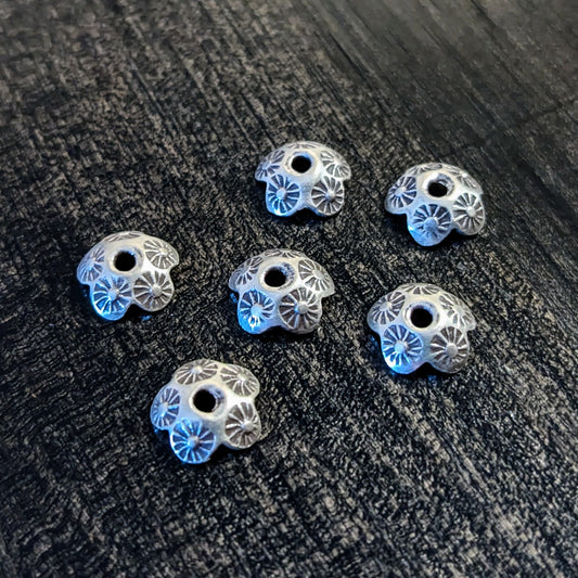 CLEARANCE Hill Tribe Flower Stamped Bead Caps, 7mm wide - sold by the pair