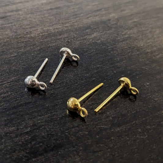 Bali 4mm Half-Ball Post Earrings, 7mm x 4mm, 3mm closed loop - one pair + backings
