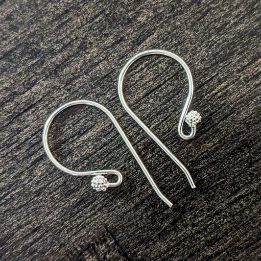 Bali Granulated Ball Ear Wires, 23mm x 12mm, 21 gauge - sold by the pair