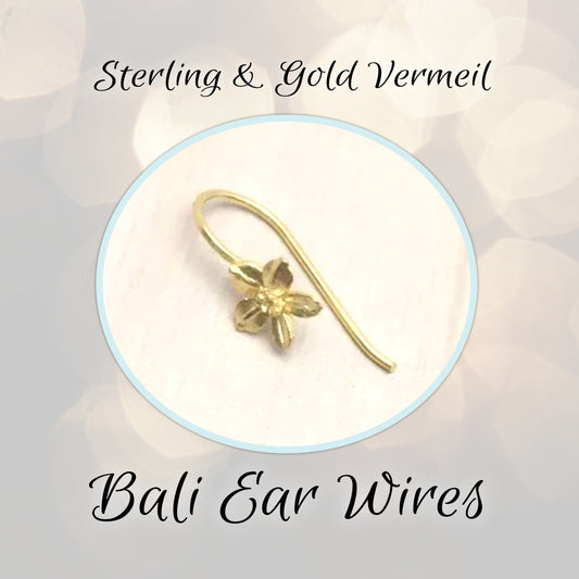 Bali Orchid Flower Ear Wires, 20mm x 10mm, 7mm flower, 20 gauge - sold by the pair